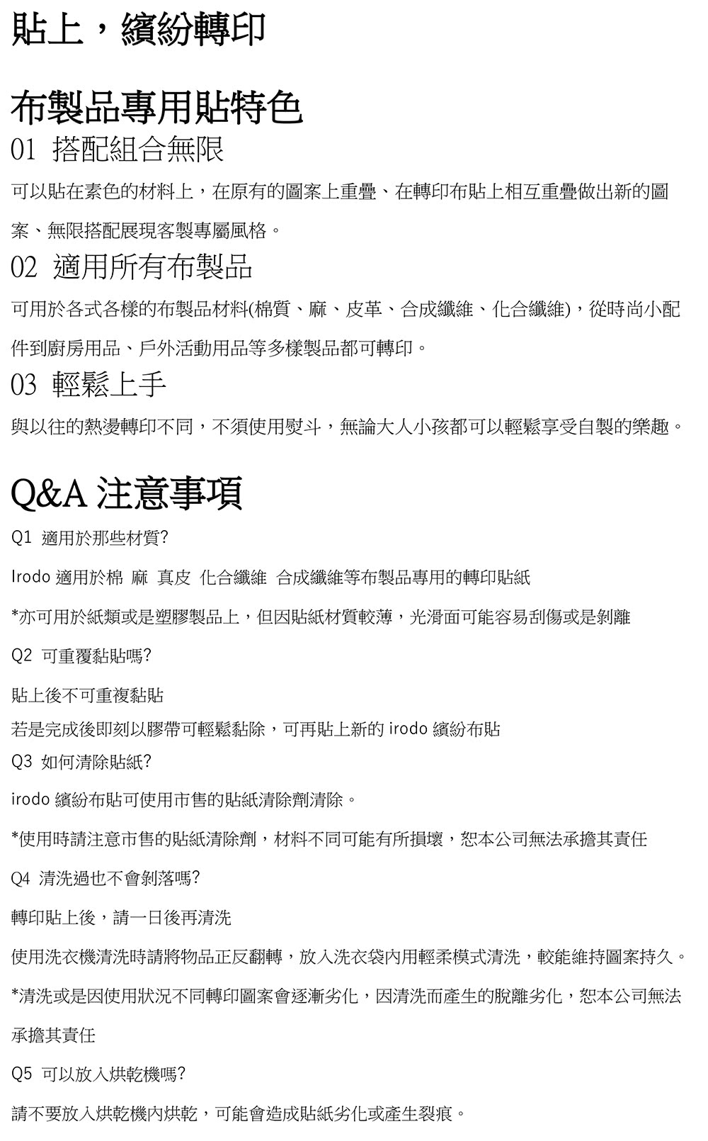 不用熨斗的布製品轉印貼 簡單輕鬆好操作無需使用熨斗更安全創造屬於自我的風格 |